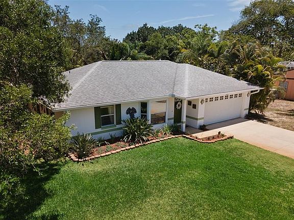 Opportunity is knocking! Located on an oversized lot (over quarter acre) there is plenty of tranquility with ponds, fountains and water features. Enjoy reading or entertaining on your patio and screened in lanai. Great curb appeal with an underground irrigation system in the front. Upon entry you will notice the vaulted ceiling in the main living/ dining room area. The kitchen has stainless steel appliances as well as an eat in area. This clean and move-in ready home boasts a split plan. The master suite is large and has its own private en-suite that has been updated as well as a walk in closet. The two additional bedrooms are generously sized and share a bathroom. Additional features are two car garage, new roof in 2014, NEW WELL AND PUMP in 2021, fenced in backyard, upgraded lush landscaping and shed. LOCATION LOCATION LOCATION- this house is 1 mile to Shamrock Park! 2 Miles to the Venice Beach Ferry! If you pay $145/year to South Venice Civic Assoc, you may use a private boat launch, kayak launch or take a ferry across to a private beach! Close to Gulf beaches, shopping and dining! Hurry- this won't last long!