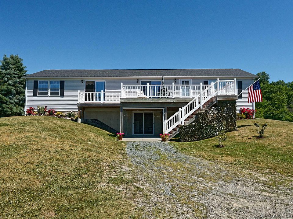 Wonderful open floor plan ranch, in move-in condition, in a setting that is beautiful in every season. Large Trex deck offers gorgeous views!! Easy 3rd bedroom & endless possibilities in the amazing walk-out basement. Energy efficient with low heating bills. Over-sized, 26x34, heated, 2+ car garage, equipped with cable TV & plenty of room for all of your toys; a true man cave that would make anyone happy! Central A/C. Many house updates include: 3 year old roof, newer furnace & water heater, well pump, & many new kitchen appliances. Enjoy the gas fireplace in living room, & low energy bills all year long. Taxes reflect STaR exemption. Contingent on seller finding home of choice.