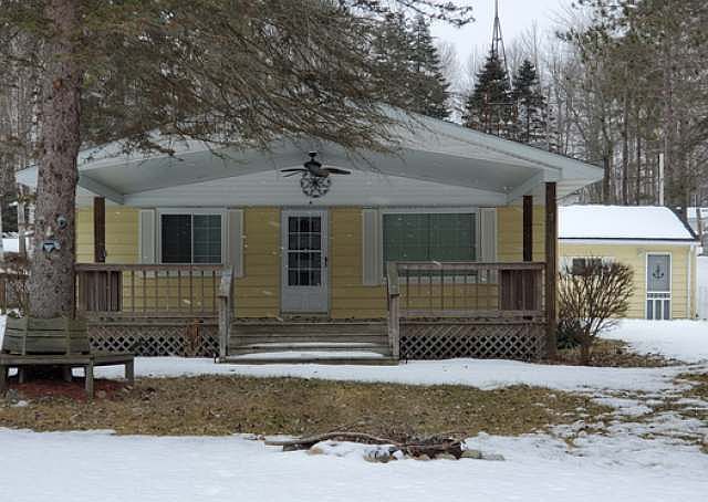 Looking for a place to make memories, look no further! The current owners have done exactly that over the last 20 years. In the summer the large covered porch is an extension of the house. The knotty pine walls and ceiling provides a nice warmth to the interior. There's a bunk room with bath in the garage. Also find electric dryer for drying towels and swim suits. Includes furnishings making it easy to move in, start enjoying the lake, paddle pontoon, fishing poles, life jacket all stay!
