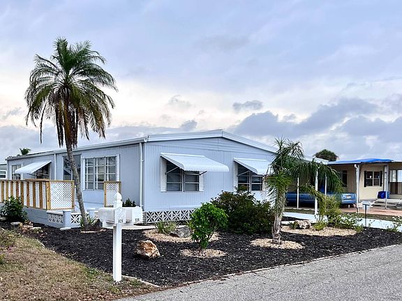 Welcome "HOME" to your newly remodeled TURNKEY Furnished home in the 55+ Resort Community of Bay Indies. You will love this OPEN FLOOR PLAN. Enjoy the UV rays on your back patio. The lattice on the carport provides shade and the storage shed has a utility sink along with W/D. Granite countertops, New cabinets and stainless steel appliances make this an enjoyable entertaining space. New vinyl plank flooring flows throughout the entire home and there is tile flooring in the baths. The guest room has a set of built-in drawers below the double closet and the updated guest bath has a tub/shower along with granite vanity, cabinet and lighting. The master suite has a full size bed and the second bedroom is currently being used as an office. Amenities in this community are endless featuring tennis, pickleball, shuffleboard, bocce, kayaking and storage, miles of walking and biking paths plus three heated pools, spas and a sauna, we have it. Not a sporty person, no problem; they offer poker, numerous card games, concerts, clubs by state, library, fitness center and scheduled dinners we have that too. Downtown historic Venice is but two miles away with beautiful beaches, fishing, boating, restaurants for every taste palate, shopping, farmer's market and art and cultural events. The lot rent is determined by the Community office and covers all the amenities offered including property taxes and lawn maintenance.