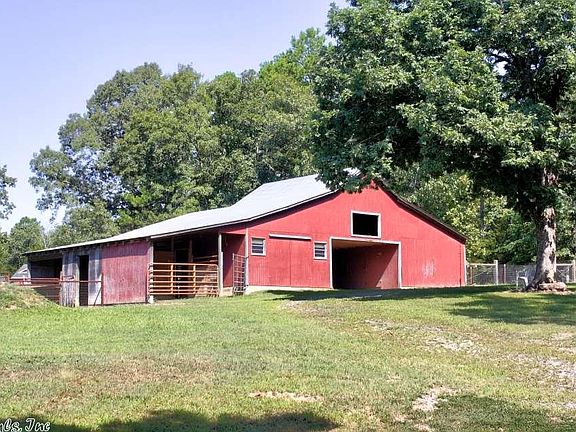 Country living on 6+ acres in this 2 bedroom - 1 bath home with lots of outdoor amenities such as a large barn that has tack room, various stalls & pens and upstairs storage loft. Fully fenced & a year-round pond that's stocked with fish. 18' x 30' concrete pad w/ rough-in plumbing & electrical that was intended to be a shop but was never constructed. Concrete storm shelter a with covered entrance. Home has vinyl siding & architectural shingled roof. Open kitchen - living room space. Trane central H & A.