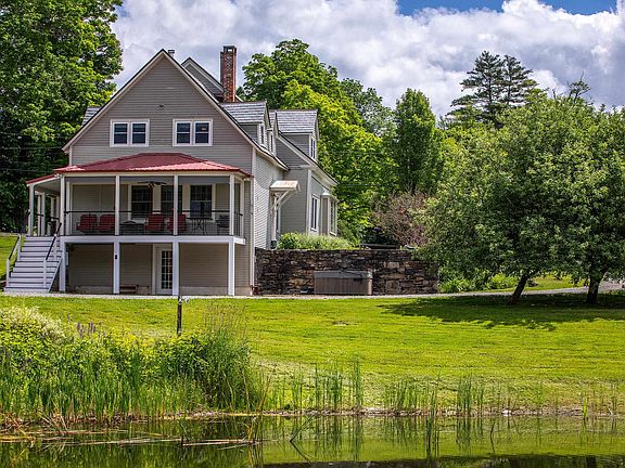 Beautifully restored post and beam 1850's Noah's Ark Cape located in the heart of Londonderry on 6.7 acres. The soap-stone kitchen, living and dining room boasts wide plank and reclaimed wood flooring, fireplace and wood stove hearth, butcher block tops and beautifully crafted cherry cabinets. Kitchen is meant to be utilized with 2 sinks for prep and clean, Viking duel fuel range, and brick commerical level hood, stainless appliances. The primary bedroom with en suite bath is also on the main level and overlooks the pond and bucolic grounds with nearby hallway laundry. The wraparound deck is accessed from the kitchen and overlooks the spring-fed 12' deep pond. The 2nd Floor offers four nicely proportioned bedrooms and two baths. Lower level has a radiant heated floor tap room and hang out space with walk out to brick patio and a very private hot tub. Large barn for multi-car storage or animal / agriculture need and workshop space. Rolling meadow and mountain views. Organic and heirloom apple trees are ever present along the tree lines and courting the drive into the property. This house and its grounds shall make memories for all who embrace it as it rests comfortably on a quiet paved town road! Only 15 minutes to Stratton, 6 minutes to Magic Mtn, VAST trails, shopping and dining...Great infrastructure has been recently attended to with an added new well, new hot water system, new slate roof and a new whole house generator. ALL OFFERS DUE SUNDAY BY 6/23 by 4 PM!