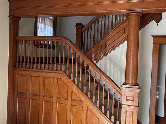 Charming 1906 Home with Timeless Appeal! This spacious 5-bedroom beauty offers 1 full bath and 2 half baths, blending historic character with everyday comfort. Enjoy relaxing evenings on the classic wrap-around porch and take advantage of the detached garage for extra storage. A rare find with room to grow!