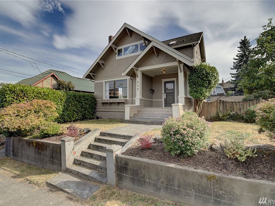 Fantastic Greenlake Craftsman. 1 blk to lake. Dramatic entry. Period woodwork, 9'ceilings and bay windows. Lg remodeled Kitchen with island cooking & bright sunny breakfast nook. Master is the entire upper-level w/vaulted ceilings and skylights. Lrg 5 piece master bath. XL walk-in closet w/built-ins. Nursery/Sitting Rm off the master. Trex Deck. Fenced, landscaped yard. Great garden space. New exterior paint. Detached garage w/alley access. Total of 3 Off-Street Parking spots.