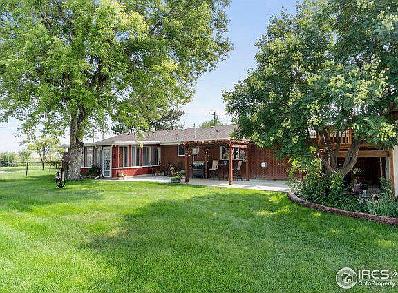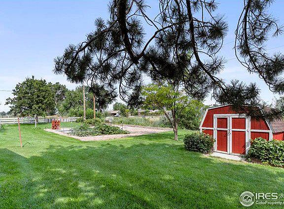 Gorgeous, unobstructed, mountain views from this 1970 built brick ranch home on 9.87 acres planted in grass hay and alfalfa, barn, tack room, lean to. There is space to stretch out and enjoy the conveniences of this close in rural location convenient to downtown Berthoud, Cater Lake, TPC golf course, riding trails, coffee houses and breweries and the new recreation center across the street.Sip coffee from the newly painted and carpeted sunroom or outside on the large patio while taking in the views and the beautiful landscaped backyard and garden area. The house is full of warmth featuring a lodge style Family room with a gorgeous gas fireplace and vaulted wooded walls and ceilings. 3 Bedrooms, 2 baths, Eat-in Kitchen and large Living Room. Hidden above the garage with a huge, private deck is a newly remodeled studio apartment great for guests.1 Share of Loveland Lake and Ditch available and sold separately. NO HOA! NO METRO TAX!