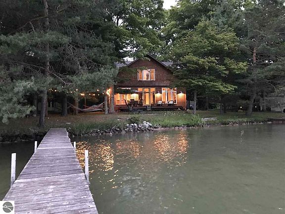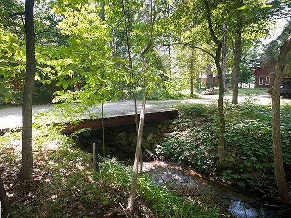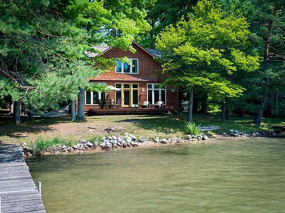 You will be enchanted with this newer built lake house as you cross the bridge over a running stream to enter this property. A relaxed vibe greets you as you approach this unassuming home and see the lake through the front door. You're almost there. Inside you'll discover an open floor plan flooded with natural light, high ceilings, 8' tall doors, tiled fireplace, a modern kitchen w/ bar seating, wood floors throughout and designer touches -- all facing the lake. A large deck overlooking the shoreline extends the living space outside. The main floor has a den that is currently used as a bedroom, a bathroom with tile wainscoting, a tiled shower, laundry room/pantry w/ utility sink and 3 closets off the foyer for storage. Upstairs there are two bedrooms, one full bath with tile wainscoting, and an open concept great room overlooking the lake that is perfect for additional guest quarters, office, or media room. Move right in and begin enjoying your sunsets over the water immediately. Crawl space has cement floor - no musty odors or dampness - and lots of additional storage space. Dock is included in sale! Measurements are accurate but not guaranteed.