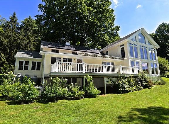 The property is spectacular for anyone who dreams of an soaring level yard with endless equestrian/farm/scenic opportunities. The home has a rich history featuring a dramatic great room with breathtaking view that any homeowner would dream of - Truly a conversation starter and a sophisticated space for entertaining guests. In addition to the bountiful rolling lawns, the rear features a deck with ample southern exposure & beautiful pergola overhanging a stone patio on the eastern side of the home. Just beyond is a large chicken coop/shed and Raspberry garden for the family. Efficient home w/ solar & whole house Generac Gen. Take the opportunity to enjoy this private slice of serenity in desirable Ridgefield - A lot like this is hard to find!