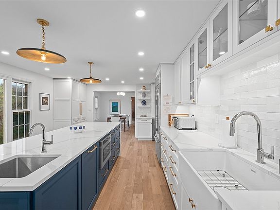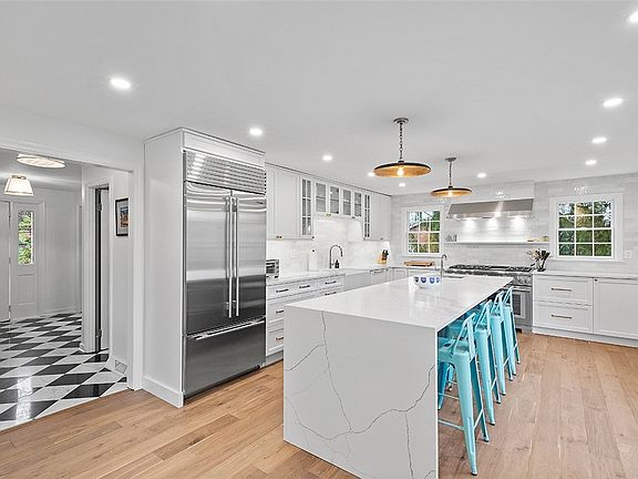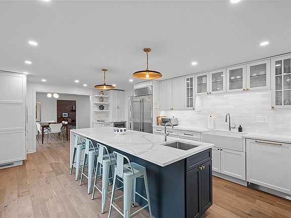 Classic brick Colonial w/MCM touches & top to bottom revamping to fit the needs of today. 2022 reno created modern yet comfortable living space w/high end fixtures & finishes, customized to maximize space & provide a relaxing respite w/a place for everything. Reimagined 1st lvl involved switching Kit & LR & removing a wall to create the Heart of the Home, a stunning Chef's Kit seamlessly flowing into open concept LR/DR w/expanded opening to FR. Sun-filled rooms bookended w/oversized windows - some Pella wdws added for even more natural light. New flooring on all lvls - harlequin pattern marble Entry, hw thru out 1st flr continuing to 2nd flr hall, neutral w/w in GR & BRms. Thoughtfully updated baths - Pow Rm w/marble topped console sink, marble hall bath w/gorgeous tile work & new soaking tub & spectacular En Ste w/the feel of a Boutique Hotel - 7' marble shower, 6' Quartz vanity, heated flr. Roomy Den, 2nd lvl & LL Ldry. Treelined streets & sidewalks to Jeffferson Elem & Mid Schls