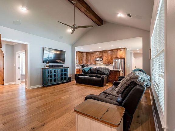 Eden Isle home built in 2023!!! Located in a very low traffic area around the corner from Eden Isle Marina, this 3-bedroom, 2.5-bath home (PLUS AN OFFICE!) has a very open floorplan with cathedral ceilings, rock and wood exterior, architectural shingle roof, lovely large covered front porch and covered back porch, 2-car garage plus a golf cart garage, stone fireplace, quartz tops, breakfast bar, custom cabinets, awesome laundry room with lots of storage and sink, large panty, master bath with his and hers vanity, walk-in shower and separate tub. 50-amp outlet in the garage, zoysia sod, and fenced backyard for small dogs! No wasted space...the perfect floorplan for full-time living or an Eden Isle get-a-way!!!