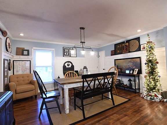 Farmhouse charm in this open concept home. Large living room with gas logs fireplace. Kitchen with granite counter tops, stainless steel appliances, a charming coffee station. Utility room with cabinets. Separate dining room with built-in china cabinet. Three bedrooms on the main level, master suite with master bath and custom built closet. Showings begin Saturday 7/31/21.