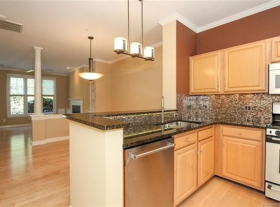 Exceptional opportunity!! 3 bedroom townhome in one of Dilworth's most popular communities - Hillside West. Move in ready. Fresh paint. New carpet upstairs. Wide plank H/W floors on main level. Kitchen with granite counter-tops, SS appliances accented with mosaic tile backsplash. Open floorplan with decorative lighting. Built-in bookcases flank fireplace. Living area opens to private, enclosed patio with mature plantings and landscape lighting. Main level half bath with pedestal sink. Upstairs master bedroom with walk-in closet and bath area with granite countertops and tile flooring. 2 additional bedrooms upstairs. Hall bath with granite countertops and upgraded tile flooring. Laundry closet. Upgraded plumbing fixtures and lighting. Garage has built-in shelving. Walking distance to Freedom Park and Park Road Shopping Center. Minutes to all Dilworth, Montford and SouthEnd have to offer.