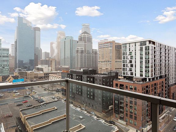 Very desirable 2 bed, 2 bath, 1 parking space, corner unit located on the 12th floor with a spectacular view of the Minneapolis skyline! Open floorplan with floor to ceiling windows that bring in tons of natural light. This unit has a beautifully updated kitchen, stainless steel appliances, bar area with wine cooler, and hardwood floors. Additional features include in-unit laundry & a private balcony. Amenities include workout facility, 24-hr doorman, patio, outdoor park, business center, guest parking & more. Conveniently located just blocks away from the light rail, skyway access, US Bank Stadium, and walkability to Trader Joe's, Mill City Farmer's Market, and many great restaurants, bars, & entertainment venues. Parking space in heated garage included.