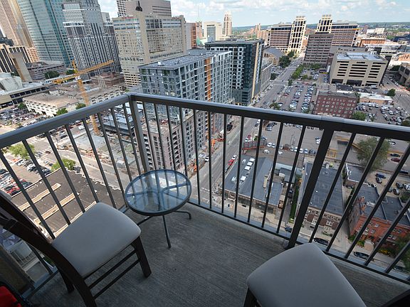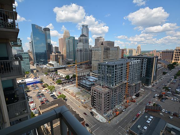 Sweeping city views from floor to ceiling windows on the 22nd level of Skyscape! This beautiful condo includes 2 heated garage stalls, private balcony, center island kitchen with granite and stainless, private owners suite with walk in closet and bath. 2nd bedroom is at opposite side of condo with its own bathroom and there is in unit laundry. Wonderful amenities; party room with billiards table, huge patio with gas grills and fireplace, fitness center, yoga studio, hot tub, sauna, guest suite and 24 hour concierge/security. Plus fenced dog run and bike storage. Live downtown near restaurants, lightrail, Mississippi Parkway and Nicollet Mall! 2 blocks to skyway entrance.