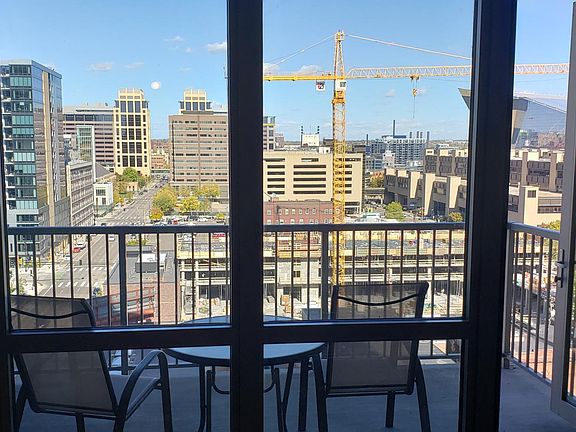 Amazing 11th floor Skyscape one bedroom unit overlooking east village in downtown Minneapolis available immediately. The unit has many modern features that include floor to ceiling windows across the entire unit, spacious and covered private patio, hardwood flooring, granite counters, stainless steel appliances, walk-in closet, and in-unit laundry. Available 11/1/20. Skyscape has a huge 6th floor patio w/lawn, fitness center with jacuzzi & sauna, community room, 24/7 front desk staff, secure access, and heated parking all included with rent. Included in rent: 1 indoor heated parking stall, water/sewer/trash, access to all building amenities.