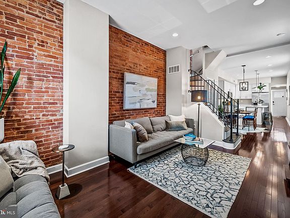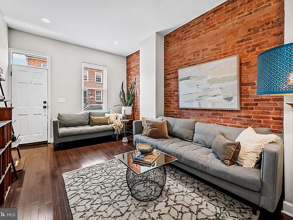 Ideally located on a quiet street in Canton, this terrific end-of-group home with parking has been renovated to create a sense of openness and urban style. The light-filled property offers 2 full bedrooms and 1 full and 1 half bathrooms, a desirable floor plan, high ceilings, upgraded light fixtures, recessed lighting, handsome wood flooring throughout, striking brick accent walls, high ceilings, custom window treatments, and upgraded materials and finishes. Features on the main level include a striking open concept living/dining floor plan, eye-catching white gourmet kitchen with spacious island, quartz countertops, stainless steel appliances with gas cooking, and a conveniently located half-bath and laundry room with stacked washer/dryer at the rear. The second level consists of 2 bedrooms and a spa-like bathroom with double sink vanity and large shower. The roof deck is another standout feature of the property, providing great space for entertainment or relaxation, and enjoying sweeping views of the cityscape. The unfinished lower level offers great space for storage. The property is ideally located within blocks of Canton Square, restaurants, bars, and shops, and within proximity to Johns Hopkins and U of M campuses, universities, Patterson Park, the Canton waterfront and promenade, Canton Crossing, and major highways.