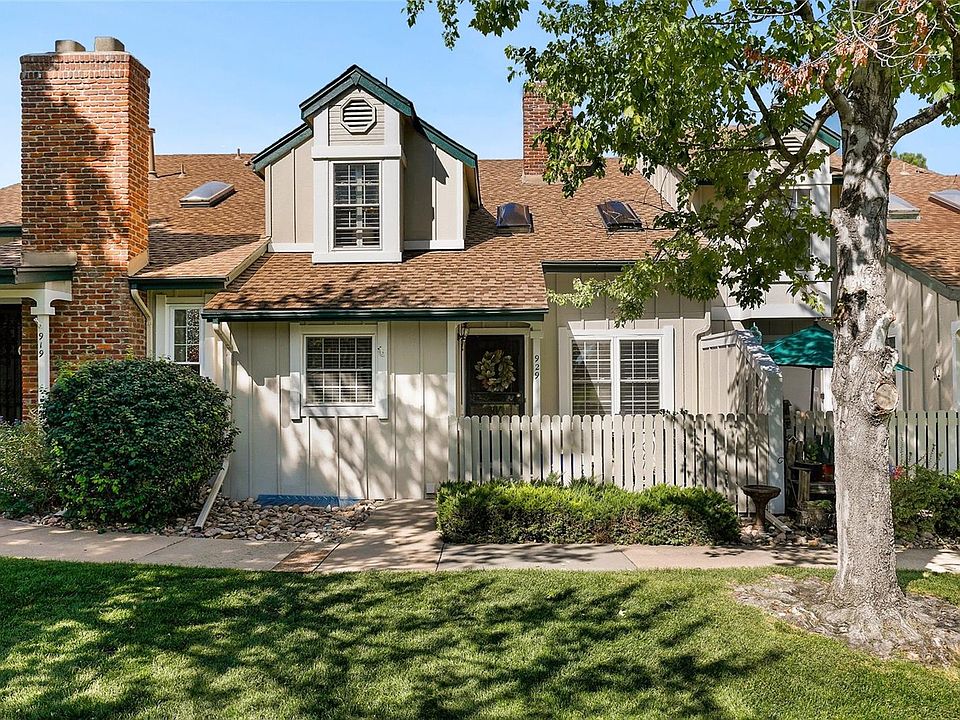 Spacious townhome on the park and next to the community pool. Light, space & character abound throughout the sprawling floor plan. Striking living room boasts a soaring vaulted ceiling, skylights, plantation shutters, built-in bookshelves & a cozy wood-burning fireplace with a floor to ceiling brick surround. Charming front fenced patio is perfect for soaking up some sunshine or grilling out. Upper level hosts a flex space with more built-ins ideal for an office, a secondary bedroom, bathroom & the master. Sizable master suite features an en-suite bathroom and 2 closets. Fully finished basement provides excellent additional living space with a rec room with a wet bar, bedroom & bathroom. In-unit laundry and an attached 2-car garage add to ease in lifestyle. Great community amenities including a pool, clubhouse & tennis courts. Excellent location close to parks, public transportation, shopping, dining & I-225 for easy commuting.