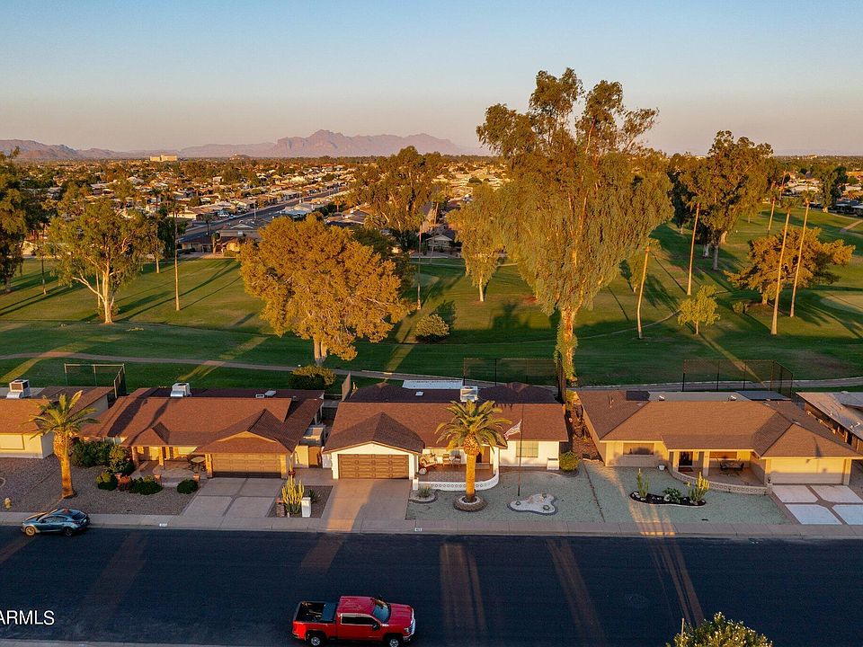 Location, Location, Location, this home sits at the junction of 6 fairways with endless views. Beautifully remodeled home with all the right touches. New roof 202, new windows and shutters for natural light and views, wood laminate flooring thru-out, designer two tone paint, LED can lights and fixtures. Your kitchen features SS LG Thin Q appliances including washer and dryer, whole house water treatment system, quartz countertops, granite sink, butlers pantry with sink and additional storage. Enjoy the stunning golf course views from your great room, kitchen and patio. The views continue past the golf course to Red Mountain and the Superstitions. Rochester's Bar/Grill and Pro shop is only a few steps away to meet your new friends for lunch. Sunland Village offers all the amenities you would expect in an active adult living for only $650 a year HOA fee: Pickleball, Softball league, Tennis, Exercise room, Pool's, Spa's, Billiards, Wood Shops, BINGO, clubs and groups for all interest. The East valley and surrounding area offers: Shopping, Walking, Hiking, Biking, Lakes and Salt River Recreation areas and more. Sunland Village is the place to call home. *seller concessions available