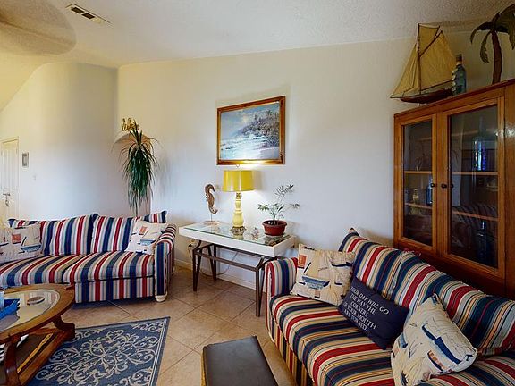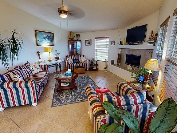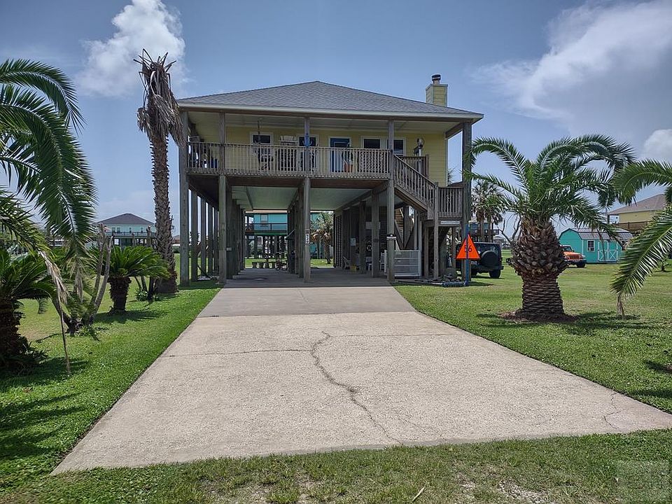 Immaculate Traditional Craftsmen home with distant views of the Gulf. Home has 3 covered decks and lots of entertaining room downstairs. A louvered golf cart garage secures one of your toys and 2 storage buildings are available for more toys. Upstairs, there is lots of storage space in this 3 bedroom/2 bath home. Beautiful and easy to clean ceramic tile accents all rooms. The beautiful fireplace is inviting for cold winters. There is an adjacent lot with a storage building available for an additional investment. The beach is just a short walk or golf cart ride away. The same is true for restaurants and bars. Call today to view.