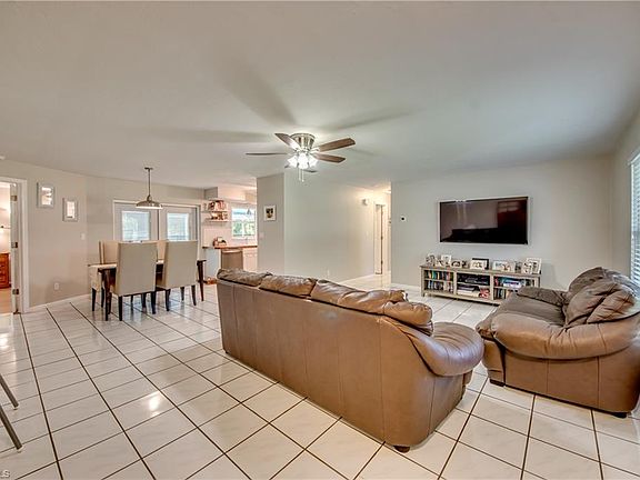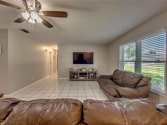 Centrally located, great 3 bedroom, 2 bathroom 1500 sq ft.+ pool home in popular SE Cape Coral residential neighborhood. All assessments are in and paid. Tiled floors throughout the house, laminate floors in all 3 bedrooms. Newer Stainless steel GE appliances in kitchen off dining room area. Very spacious living room in front area as you walk in. Split floor plan with 2 bedrooms on one side and spacious master bedroom on other side. Master bathroom has step in shower, second bathroom with shower tub combo and access to pool area. House has recently been freshly painted inside and outside. Fantastic Pool area completely screened in, large lanai with outdoor TV, large pool, new pool pump and removable child fence for around pool. Pass through window from kitchen. Still lots of back yard available for play area and / or pet area. Property is completely fenced in. 2 car garage. Easy to show.