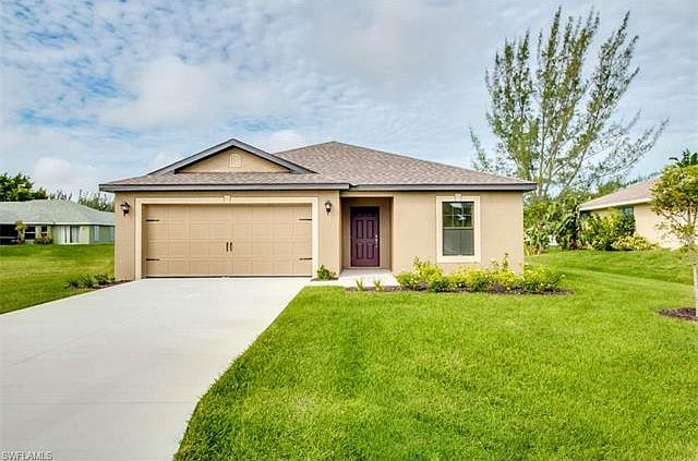 Home is under-construction and the expected completion date is Dec 18, 2017. The Brand New Amelia floor plan is located in the beautiful Cape Coral. This spacious one-story home features 3 bedrooms, 2 baths, and is 1,401 square feet with a 2 car garage. Included in this beautiful new home, are new appliances, custom cabinets, sprinkler system in front and back yards, and a Homeowner Warranty.