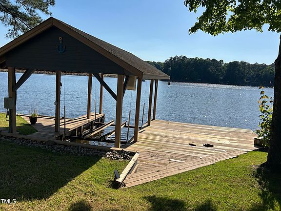 Enjoy Lakefront Living in this beautiful home! Amazing views from the main level and walkout finished basement. Lower level has living space with wood stove, kitchen, large bedroom with walk in closet, full bath and 2 flex rooms. Large storage room for all of your lake toys. Main level has great room, dining room and eat in kitchen, primary bedroom with sitting area, bath and walk in closet. 2 additional bedrooms and full bath. Property is located close to the front gate on a level lot leading back to the boathouse, jet ski ramp and dock for entertaining or just relaxing by the water. New LVP and carpet in lower level, 2025. New HVAC for lower level, 2025. Refrigerator and Hottub convey.