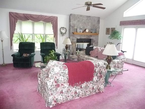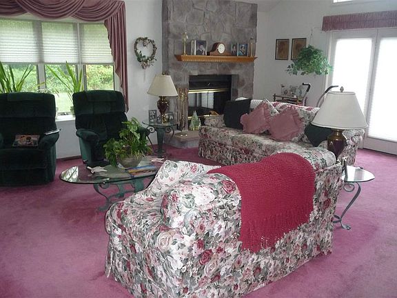 - Wall to Wall Carpet, Vinyl Flooring, Tile Flooring, Fireplace- Wood