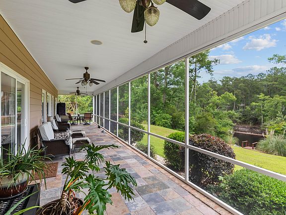 This absolutely gorgeous home is situated over a half an acre on the serene Waccamaw River, overlooking the Shaftesbury Glen Golf Course. Step into the grand marble foyer, leading you into a spacious living room with bright, open space and amazing river views. The two-story living area opens to a large kitchen, boasting an abundance of cabinets, counter space, stainless steel appliances, and granite countertops, with a huge pantry featuring an etched glass door. Enjoy breakfast in the cozy nook off the kitchen, overlooking the river. For entertaining, a formal dining room is conveniently located off the kitchen. Spanning the back of the home, a 50-foot screened porch offers fantastic river views. The spacious owner's suite on the main level includes two walk-in closets, a jetted tub, and a separate walk-in shower. Head up the grand staircase to a loft, perfect for an office. Across the walkway, you'll find a full hall bath, a third bedroom with a large walk-in closet, and a fourth bedroom with an en-suite bath and an enormous walk-in closet. There is also a large bonus room. The four car garage provides ample space for vehicles and all your power toys and includes a workshop. A roomy laundry room is conveniently located near the owner's suite. Additional features include a golf membership, surround sound, a security system with cameras, and energy-efficient windows. Enjoy peaceful moments on the deck and floating dock by the river. All information is deemed reliable but not guaranteed. Buyer is responsible for verification.