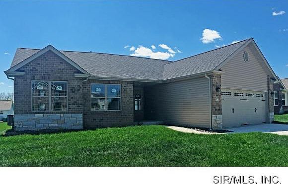 WWW.HOLDENREALTYGROUP.COM Call Susan Holden, 618.531.4926 or David Holden, 618.5341.4887 to see. susanholden@remax.net Move in ready now!.One story floorplan with lots to like. Vaulted greatroom with gas log fireplace opens to the vaulted, equipped kitchen with eat at breakfast bar that includes dishwasher,smooth top range, & microwave. Vaulted master suite with 7x7 walk in closet, full bath with dual adult height vanity. Freise carpet, wrought iron spindled staircase to the partially finished lower level with expansive family room., 4th bedroom and plenty of storage space or for future growth. Easy access to I-64 for quick commute to Scott Air Force Base or downtown St. Louis. O'Fallon Schools.
