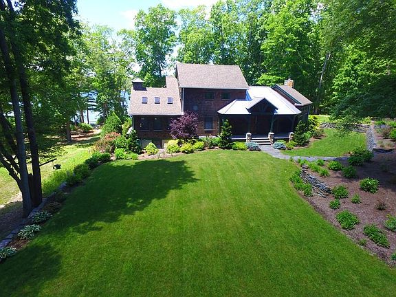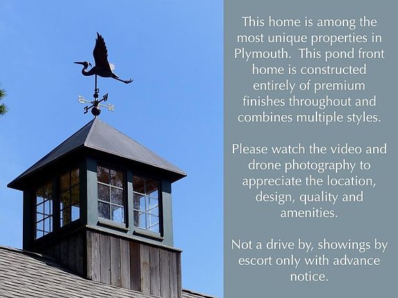 This property is among the most unique homes we have offered in Plymouth. The quality of finishes throughout is simply stunning and the ambience of the home and its surrounding 4 acre waterfront lot is truly amazing. The video presentation and drone footage take you through what is an amazing house. The property is shown by advance reservation and all showings are escorted. Garage is 60x24, with an oversized 36x24 center section and two 12x24 shops on either end. A 12x16 mezzanine is used for storage.