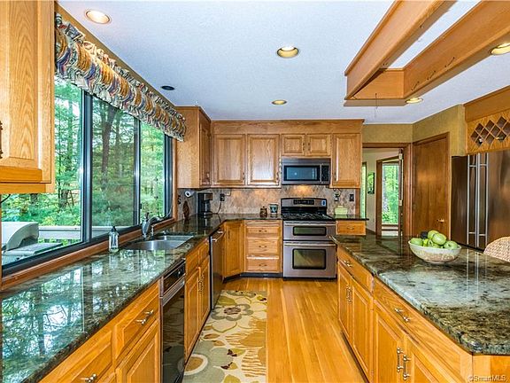Stunning home situated on a private lot featuring loads of upgrades! Dramatic 2-story foyer welcomes you into this home. The large eat-in kitchen is equipped with granite counters, tile backsplash, an island, and high-end stainless steel appliances. Floor to ceiling windows let in plenty of light. Kitchen leads to a sunken family room w/floor to ceiling fireplace & sliders to the deck. Large formal living room and dining room. There is also a convenient laundry/mudroom on the 1st flr. 2nd floor consists of 4 bedrooms and 2 full baths. The Master Suite includes a fireplace, vaulted ceilings, sitting area, walk-in closet & full bath with whirlpool tub, shower & double sinks. Walk- out finished lower level completes this home. 2 Car garage, central air & vac. New HW Heater- 2019.
