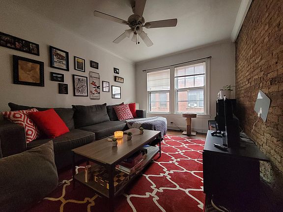 Large and lovely 2nd floor unit. Living room w/exposed brick, flows into dining room, and then bonus room. East and West light. Exposed brick. Both bedrooms equal size, great storage, ceiling fans every room, heat included. And this is in the center of the universe for Lincoln Park or Lakeview AND 2 blocks to Trader Joe's & Diversey brown line. Free and AMPLE street pkg. Call or text Rachel. First showings this weekend. Don't miss out. Lease must start on or before 6/1/21.