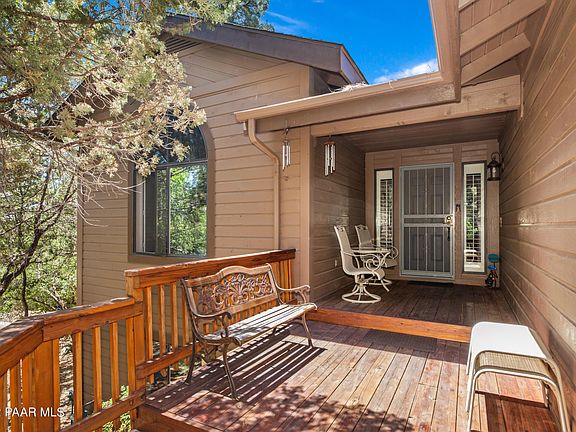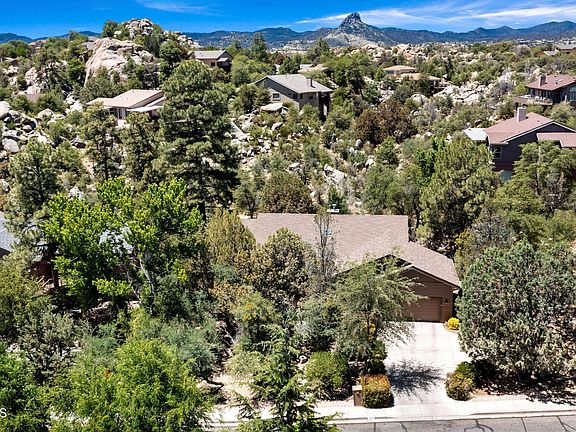 Impressive custom home with an absolute perfect setting in the boulders and pines! Open and spacious kitchen with 2 islands, plus a formal dining area. Living room with cozy corner fireplace and loads of natural light! Spectacular owners suite with spa-like bathroom with huge walk-in shower w/ dual shower heads and body sprays, elegant soaker tub, + 2 walk in closets. The back deck extends all the way along the rear of the property and features a private ''in-deck'' hot tub. Functional and versatile floor plan with 3 ''Bonus Rooms'' including a hobby room, fitness room and don't miss the office in the crawlspace accessed from the fitness room. Other features include vaulted ceilings, recessed lighting, skylights, shutters, wet bar area in fitness room, low HOA fees & outstanding location! This is your peaceful, private retreat in the boulders and pines of Prescott! Listing agent related to Seller.