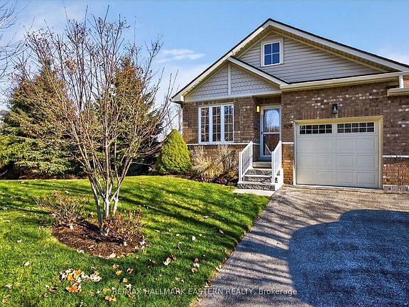 Beautifully renovated west-end end-unit condo offering turnkey, low-maintenance living in one of Peterborough's most desirable neighbourhoods. This bright and modern bungalow-style unit features a fully updated main floor with 2 bedrooms, a brand-new bathroom with a walk-in glass shower, and convenient main-floor laundry with upgraded tile flooring. The home showcases all-new 3/4-inch birch hardwood floors, custom trim, and an inviting open-concept living and dining area complete with a cozy gas fireplace and a walkout to a private deck overlooking mature trees and green space. The large, upgraded kitchen is perfect for cooking and entertaining, offering quality cabinetry and granite countertops. The renovated lower level adds exceptional living space with new flooring throughout, featuring a spacious bedroom, an additional bathroom, a generous rec room with a second fireplace, and a walkout to the backyard-ideal for guests, hobbies, or multi-generational living. Parking and storage are easy with an attached garage that offers direct access into the unit. This beautifully finished end-unit combines modern upgrades, privacy, and functionality in a quiet, well-maintained community close to parks, trails, shopping, and all west-end amenities.