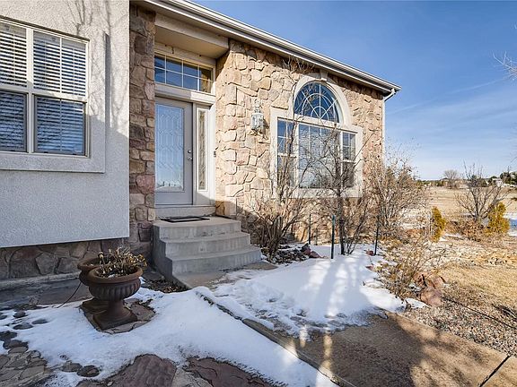 This 2-story home is ideally situated on 2.5 meadow acres only 10 mins from Colorado Springs (Woodmen/Academy), 3 mins from St Francis Hospital & offers easy commutes to Peterson & Schriever AFBs & Air Force Academy. This home provides 4 beds, 3 baths, 3 car attached garage, stunning views of Pikes Peak & the Front Range, & award-winning D-20 schools. The main level provides formal living & dining, excellent kitchen w/double ovens, island, walk-in pantry, &eating nook, office/bedroom and bath. Upstairs loft & master bed share a fireplace & the 2 secondary beds share a bath. A garden level, unfinished basement could consist of 2 more beds, another bath, media/rec area, whatever you desire. Expertly landscaped, this home is refuge from the City but overlooks the incredible lights& Pikes Peak in the back. Huge windows open up the light & view. Large, 3-car garage, air conditioning, plus a 1/2 court, concrete basketball court in the backyard makes this a place for everyone. Welcome home!