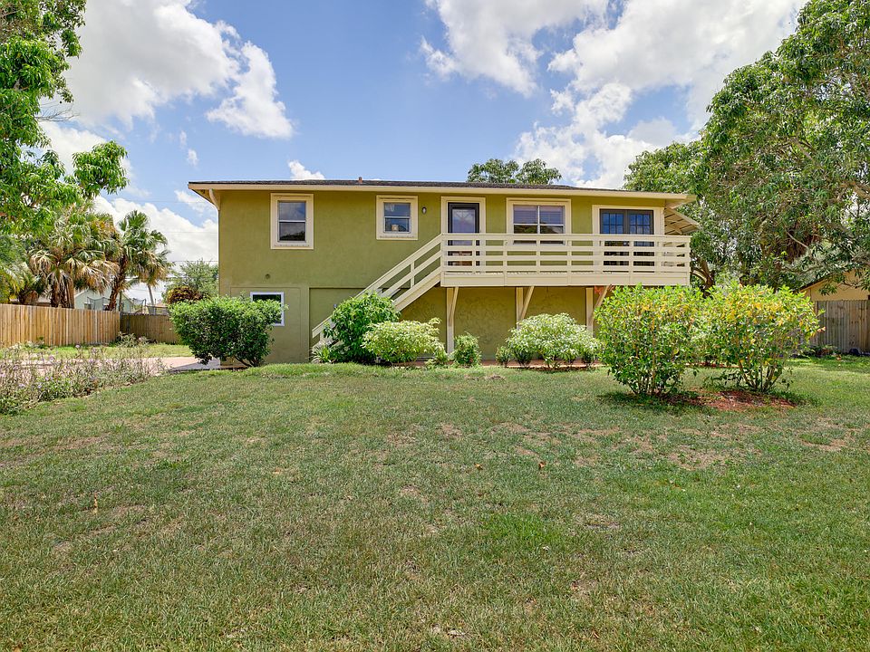 Charming 4 bedroom/3 bath home in a well-kept non-gated, non-HOA community. Two stories with separate entrances (no internal stairs). 1st floor has kitchen, family, living, 2 bedrooms, full bath, and utility room with washer/dryer. Second floor has 2 bedrooms - master with en-suite, 2nd full bathroom, large living/dining area with enclosed balcony. Spacious 1/4 acre fenced in yard located across the street from Woodlands Middle School. Home equipped with security cameras and outdoor shed for storage. Separate living quarters (upstairs and downstairs) is perfect for in-laws, guests, extended family members. Great location - close to the Turnpike and Wellington. Easy to show.