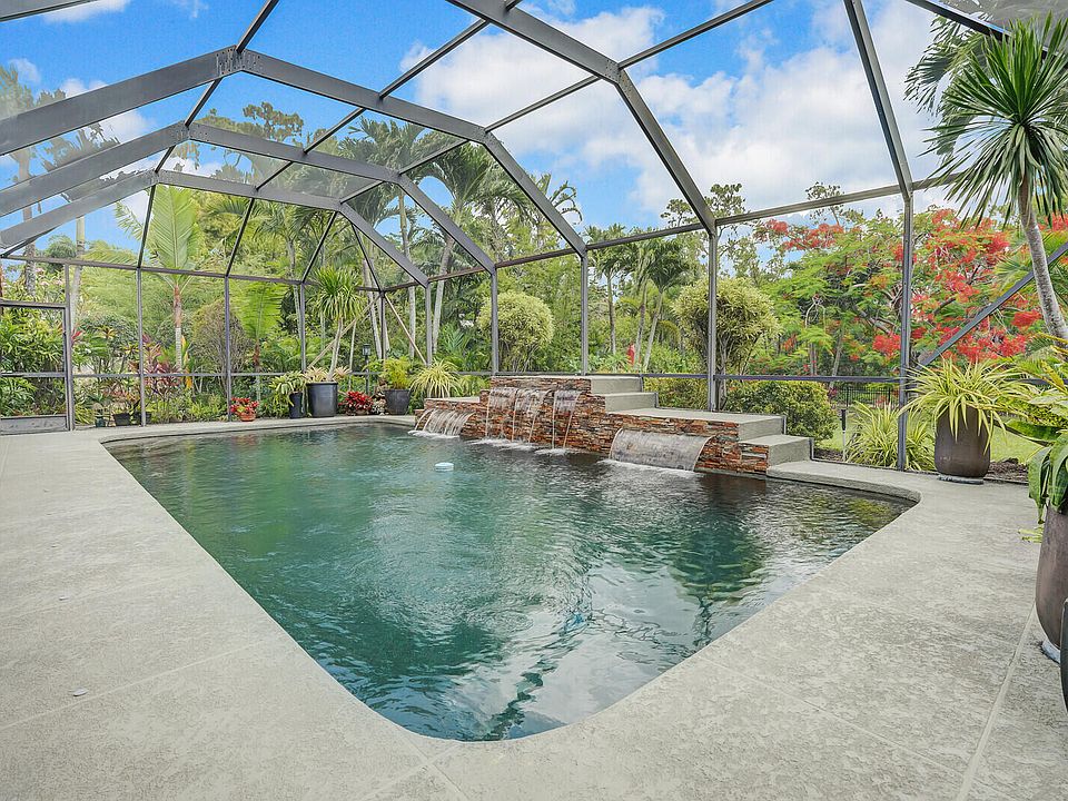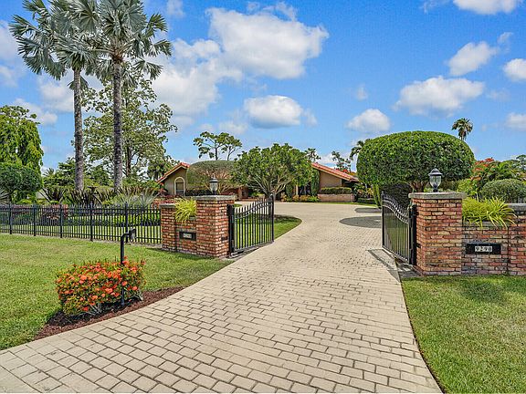 Watch the narrated video tour! Welcome home to this luxurious single family property nestled in Sherbrooke Estates - a hidden gem of a community boasting 165 custom homes all on no less than one acre of land. This stunning residence offers an abundance of space with 4 bedrooms, 2.5 bathrooms, within 3336 sq ft of pure serenity. As you step inside, you'll be greeted by rich, ivory honed travertine and a cozy living and dining room where you can host memorable gatherings with friends and family. Step through the formal dining room to an elegant kitchen equipped with a double oven, arched Chicago brick stovetop with decorative travertine inlayed backsplash, distressed cabinetry, and a unique Soap stone and wood island, perfect for whipping up culinary masterpieces. Need a moment of tranquility? Retreat to your own private yoga room where serenity and peace await. One of the highlights of this property is the outdoor oasis it offers. Step outside and be captivated by the beautiful pool and Balinese garden. Imagine spending warm summer days lounging by the heated pool, surrounded by lush greenery and palm trees. Whether you're hosting a barbecue or enjoying a quiet evening meal, the outdoor kitchen provides the perfect space for entertaining. And on cooler nights, cozy up next to the wood burning fireplace. Every room in this home offers breathtaking views of the spectacular gardens that surround the property. Wake up to the sight of vibrant colors, the sounds of nature, and the soothing aromas of the herbaceous plants. This lush, tropical paradise is just a few steps away from your backdoor, inviting you to explore its wonders. Immerse yourself in a dense garden filled with native Florida plants and exotic fruit trees. This is truly a haven for those who appreciate the beauty of nature.