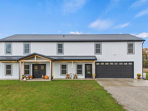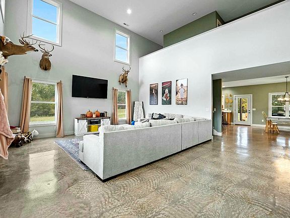 OPEN HOUSE - SATURDAY NOVEMBER 11, 2023 11:00 AM - 1:00 PM Nestled on a tranquil 12+/- acre country estate, this remarkable barndominium was constructed in 2022 to provide the perfect blend of modern living and rural serenity. As you step through the front door, you're welcomed into a spacious living room boasting grand 17-foot ceilings. Adjacent to the entrance, a coat closet and cubby storage area offer practicality, along with a convenient half bathroom. The open-concept kitchen features two roomy pantries and a 6-foot island with a stunning red oak wood tabletop, all complemented by brand new appliances. This space flows seamlessly into the expansive dining room, creating an inviting environment for gatherings. Off the dining room, the master bedroom awaits, offering two spacious closets, a private toilet room, and a beautifully tiled walk-in shower. Upstairs, you'll find an additional living room, two more bedrooms, a shared bathroom, an office, and an additional bedroom en suite. The attached 1,100-square-foot garage includes both a main garage door and a side entrance, providing ample storage and parking space. The home is generously adorned with large windows that flood the interior with natural light, and the open back patio offers plenty of room for outdoor entertainment, all within the vast 12+/-acre property, ensuring utmost privacy and tranquility in this idyllic country setting.