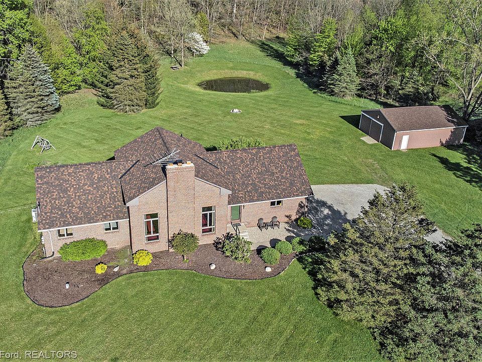 Once in a blue moon does a total package like this become available for purchase. Sited roughly 350’ off the road, the generous driveway allows for maximum privacy, and leads you to this solid as a rock home. Nearly all brick which is both rare and wonderful from both a quality & low maintenance perspective. The just over 10-acre parcel is wonderfully balanced with cleared & wooded land, with roughly 65% treed & well buffered from neighbors. Inside discover the open & explosive living space! The towering great room w/a wood stove, an excellent supplemental heating source, is perfect for gatherings. Great room opens into the well-outfitted kitchen w/quality, wood cabinetry. Adjoining dining/breakfast nook has a door to the decking. Three first floor bedrooms & 2 full baths including one bath with an oversized soaking tub. Upstairs discover a 4th bedroom with a supersized, walk-in closet & balcony overlooking the majestic setting. The lower level is a dream come true; extra tall ceilings, a second wood stove & the mechanicals all off to one side of the basement for ease of future finishing. The attached garage has a 2 + car capacity (22’ x 29’) & is pre-plumbed for a utility sink, the pole barn (30’ x 40’) has a mostly concrete floor (2/3), & electricity. A perfect paddock plan for future horses with 5 possible pastures are & a detailed plan is available for review. Two ponds on the property including one nearest the home filled with goldfish which renders it wonderfully clean. Roofs replaced on both house & pole barn in the last 3 years, newer electrical panel, middle aged AC condenser. This semi-rural location feels like it’s a world away, however, is located moments to parks, schools & Downtown Davisburg & Holly. This home was very well built & has been meticulously maintained & enjoyed by its longtime owners. Inquire for complete info pertaining to additional secondary structures & animals. This homestead is available for immediate occupancy, too! IDRBNG