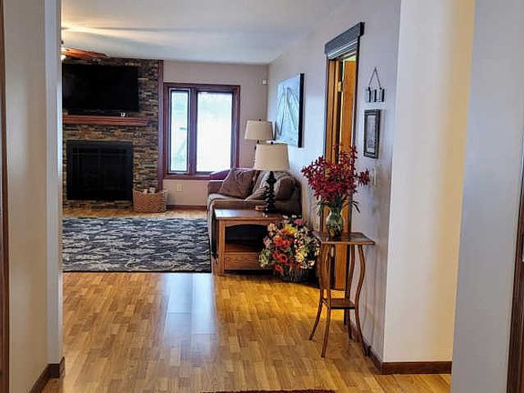 Check out this 4bd/3ba home w/nearly 2ac on Island Lake. This spacious one level home has many amazing updates throughout the already stunning property. The kitchen has beautiful granite countertops, pullout cabinets, & pantry. The appliances & thermostats are "Smart", including a fingerprintless stainless steel fridge, double wall oven, dishwasher, & gas cooktop. The large master suite has 2 walk-in closets, & a private bathroom with roll-in shower. 3 additional bdrms are spacious & full of light & large closets, one bdrm is currently being used as an office. The Pella windows with blinds inside provide so much natural light throughout the home. The cozy family room has a welcoming stone fireplace with doors leading out to the patio that overlooks the lake. Attached heated 3 car garage & large pole building provide ample amounts of storage. There are lots of outside "new", including new siding, gutter system, and a new blacktop driveway, just to name a few. This is a must see!!