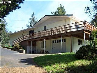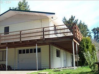 Home Has Some Deferred Maintenance, New Metal Roof Installed In 2007. Excellent Location On Floras Lake. Large Deck Facing South With Views Of The Lake. There Are Two Large Garages, Spacious Rooms Upstairs And A Bonus Room Downstairs. Access To The Lake From The Property!