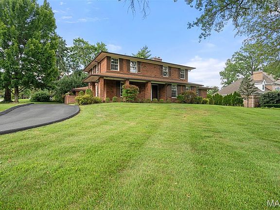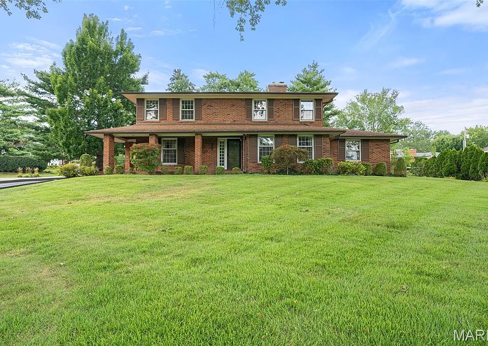 Situated proudly in Ladue's sought-after La Hacienda neighborhood with unobstructed views of St. Louis Country Club grounds. This well-maintained, all-brick colonial offers a premier location. The solid construction and thoughtful layout present endless potential for the next owners to make it their own. Find generous living spaces filled with natural light and classic charm. The main level includes a formal living room with marble fireplace and built-ins, a bright family room with French doors opening to a large brick patio, a kitchen with vintage charm and breakfast area, a full bathroom and a bedroom. The upstairs 4 bedrooms are spacious and serene, complemented by two full bathrooms- including one with a marble-clad walk-in shower. The finished lower level provides additional living space—ideal for a media room, playroom, or home office with built-in shelving, a half bath and unfinished storage. Outdoors, a private patio and beautifully landscaped grounds offer space for entertaining or relaxing in quiet comfort. The detached garage and extra parking areas add convenience, while mature trees and lush greenery provide privacy and curb appeal. Whether you're looking to move right in or renovate over time, this timeless home is a rare opportunity in a prime Ladue location.