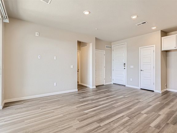 This brand-new home is ready for move-in! A fantastic MAIN LEVEL VERY PRIVATE end unit with plentiful southern sunshine and 10' ceilings! You'll find a well-equipped kitchen?boasting a gracious center island that overlooks an expansive great room with direct access to a generous covered patio. A lavish primary suite showcases a roomy walk-in closet and a deluxe private bath with dual sinks and a benched shower. Light fills this home highlighting the modern white shaker style cabinetry and beautiful granite countertop in the kitchen. Private, corner unit! Home has in-unit laundry room with space for side-by-side appliances. Enjoy the community park, BBQ and fire pit area, and quick access to Westcreek Dog Park, Cherry Creek Trail, DTC, Main Street Parker, Castle Rock and Denver. Open community parking, limited number of one-bay detached garages available for additional purchase price. Building has an elevator. Fantastic Parker location! Photos are not of this exact property. They are for representational purposes only. Please contact builder for specifics on this property. Don't miss out on the new reduced pricing good through 9/30/2023. Prices and incentives are contingent upon buyer closing a loan with builders affiliated lender and are subject to change at any time.