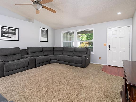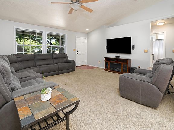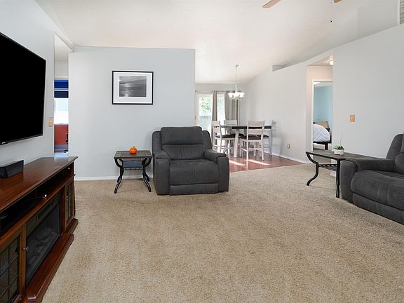 Single level, split bedroom design with bonus room. Great room with vaulted ceilings and ceiling fan. Kitchen features breakfast bar, skylights, double oven and pantry. Master suite includes a walk in closet. Full fencing and auto sprinklers. Newer HVAC. Great location near freeway, movies, shopping, restaurants and more.