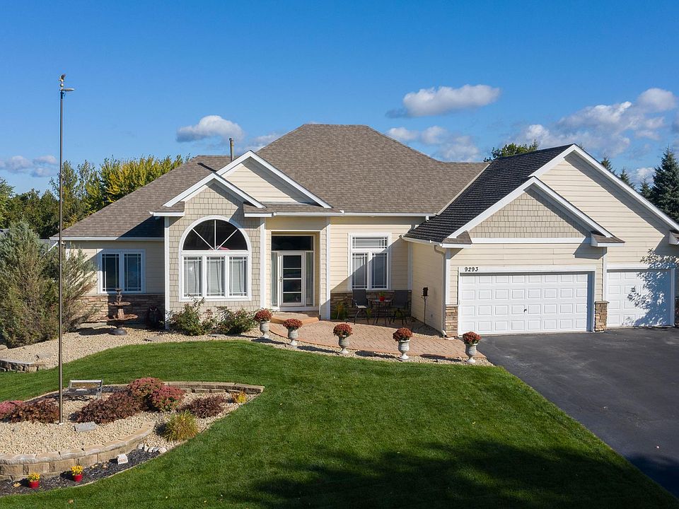 Awesome walkout, like new rambler, custom maple raised panel cabinets, refinished maple hardwood floor, new paint/carpet. Gourmet chef kitchen w/stainless steel appliances & granite counter. Formal & informal dining w/ coffee bar. Open floor plan with 12ft ceiling, 3 sided fireplace, 5 large bedrooms, owners bath w/whirlpool & separate shower. Office, game room, exercise room and lower level workshop. Huge deck w/stairs. .40 lot, landscaped w/perennial gardens, 2 patios, new roof 2014, lower level in-floor heat, and sprinkler system. Slideshow & 360 virtual tour has a 10 WOW Factor!