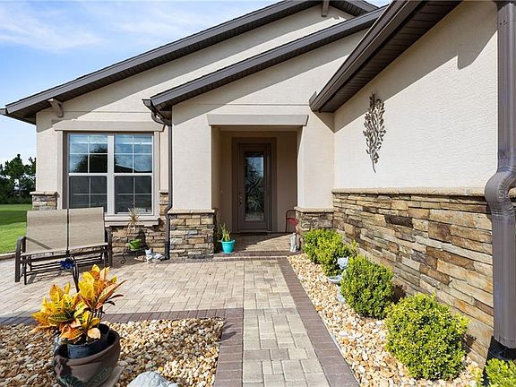 Beautiful Key West style Martin Ray Model located in the coveted Stone Creek Golf Community includes all the amenities that healthy senior living demands. This home contains many builder upgrades including designer features, crown molding, gourmet kitchen w/ granite countertops, and specialty bathroom fixtures. The driveway, front, and rear patios are all paver brick. Custom landscaping, cement edging and stone accents around the entire home create custom views from every window. Go-Green upgrades: 10 panel power system, 5 tubular skylights and attic vent system. UPGRADES: Power screen on garage and hideaway screen at front door for ventilation. Sunroom and office/she shed add extra living space. Granite countertops and tile throughout-No carpeting. Custom glass front door, custom paint, 5 ceiling fans, laundry cabinets, Ecowater water refining system, garage shelving, drop zone at garage entrance. The Martin Ray gives couples and small families what they're looking for in single-story living. Entertaining is made easy, with a seamlessly connected cook's kitchen, dining area, and gathering room. A flex room provides for a den, office, or even an extra bedroom. Count everyday storage as another strength, with a huge pantry and an extra garage bay that's big enough for a golf cart.