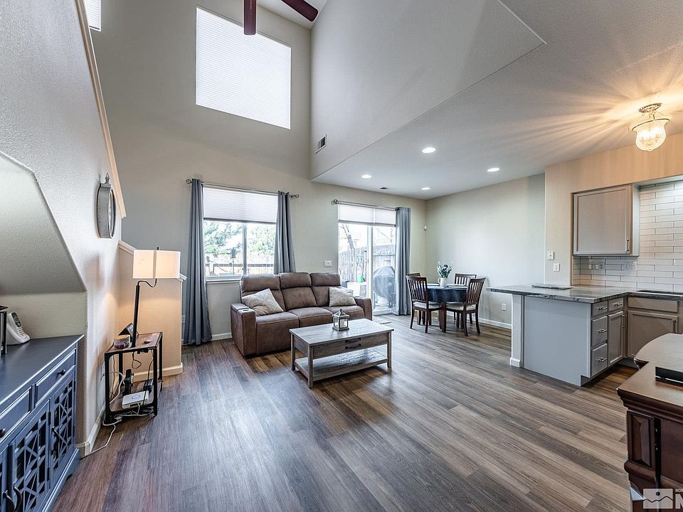This beautiful townhome boasts an unparalleled level of sophistication with its fully modernized and updated kitchen, completed just 18 months ago. The main level exudes comfort with newly installed quality flooring and freshly painted walls, while the incredible ceiling height affords an abundance of natural light to pour in, creating a relaxed ambiance. And delight in the recently constructed patio accessible through the back sliding door, inviting you to relish in the fresh air from the outdoors.