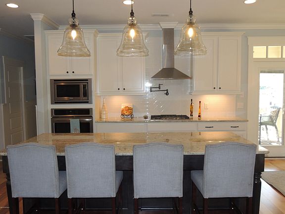Beautiful home in Devaun Park, a waterfront community along the Calabash River! This home boasts 4 bedrooms & 3 Baths. Large kitchen with 8' island. Soft closing drawers, gas cook top, pot filler. So many details in home including crown moulding throughout, exposed beams in living room, coffered ceilings in master bedroom, craftsman style trim around windows & doors, wainscoting, plantation shutters, whole house water filtration, Master Bath has large walk in tiled shower, his & hers vanities. Master bedroom has large his & hers closets, Tankless hot water heater, fenced in yard. Fireplace in living room, Walk-in pantry; laundry room has built in bench with hooks. Lots of outdoor living including three-season room, back porch & front porch. Walk-in storage in attic, closets throughout