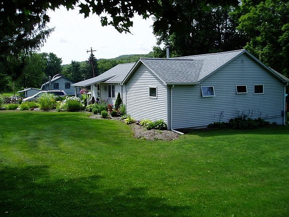Wonderful 3 bedroom 2 bath ranch home on country 14.2+- acres just minutes outside Elmira and not far from Corning and Mansfield. With a good mix of field and woodland there is TROUT STREAM just off the back yard, another smaller stream, and there is a small pond as well. Out in the country but conveniently located, this home features a multi-tiered deck that overlooks the spacious back yard and has a large two story HEATED barn that sellers use as an oversize garage, workshop and dry storage. Oil gas and mineral rights go with this property and