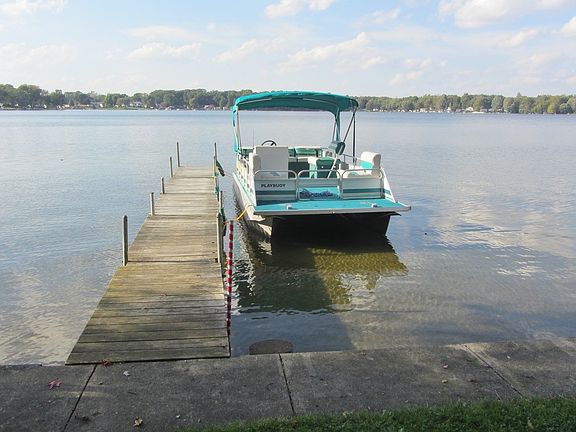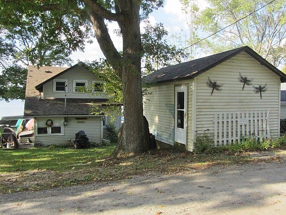 Two story cottage with 40 Ft of lakefront on Pretty Lake. This shoreline has some of the best firm and gradual beach on the lake. Level lot with concrete seawall, perfect sandy beach and far reaching views across Pretty Lake! A 60x260 (.32 acres) back lot is included. The cottage is charming with rustic hardwood floors, a large living room, dining area and fireplace. The kitchen is small and basic. All kitchen appliances, washer & dryer are included. Upstairs there are 2 bedrooms and a large landing area that is used as an extra sleeping area. One bathroom with stand up shower on the main level. The shed/workshop is perfect for storing the water toys and has a hook up for the washer and dryer. The dock is included. The dock to the left on the seawall as you're looking from the house to the lake is the neighbors, and does not go with this property.