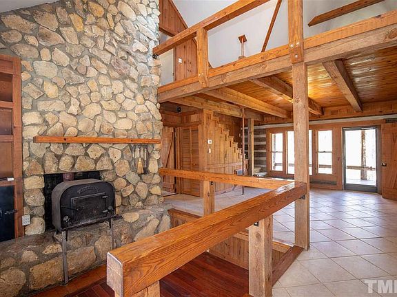 One-of-a-kind opportunity with log home handcrafted from reclaimed timbers, stone and brick original to the area. This unique home and fabulous location offer the best of both worlds. Enjoy both the quiet relaxing feeling of being in the country and the conveniences of excellent shopping with an easy commute to RTP. Surrounded by generous porches from which you can enjoy the 1.61 acre wooded lot that will make you feel like you have found a remote refuge. Large Detatched workshop is a handyman's dream.